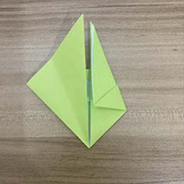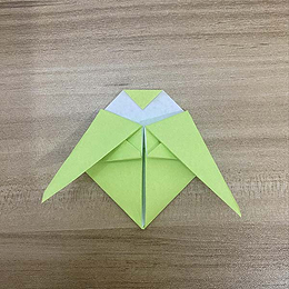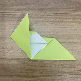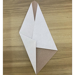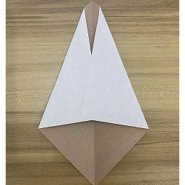上の角をこのように下に折ります。