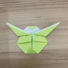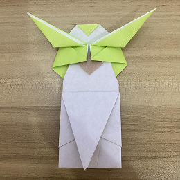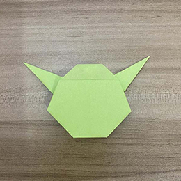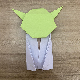 ヨーダのとても大きな耳をこのように折り下げます。