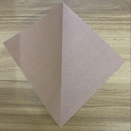もう一枚の正方形の折り紙を用意して、色のついた面を上にします。