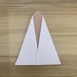 上の層だけをつかみ、三角形の半分くらいが上の端からはみ出すように上に折ります。