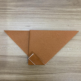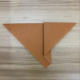そのふたの一部を後ろに少し上向きに曲げて、耳の形を作ります。