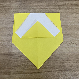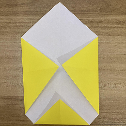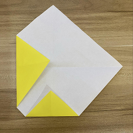 写真のように、右の角を横の折り目の上で内側に折ります。
