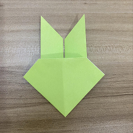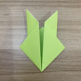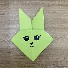 ウサギに目を描きます。これでかわいい折り紙のウサギの完成です!