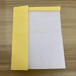 両面カラーの折り紙を使っている場合は、明るい色の面を上に向けてください。