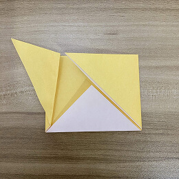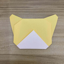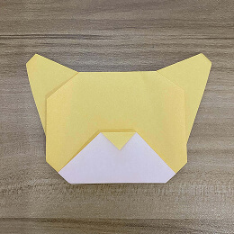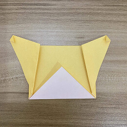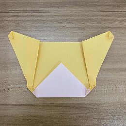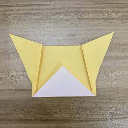 次に、頭の左上と右上の角を後ろに折ります。