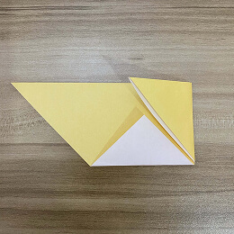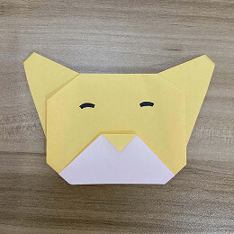 上のフラップの端を折って鼻を作ります。