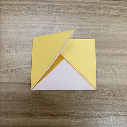 両面に色がある折り紙を使う場合は、明るい色の面を上に向けてください。