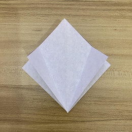 紙を半分に折ります。上の角を下の角に合わせて折ってください。