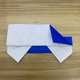 上の部分を横の折り目で折り下げて、車輪を完全に覆います。
