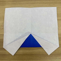 下の端を中央の折り目に合わせて折ります。