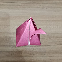 左のフラップを右のフラップに差し込むために、上の層を図のように折ります。