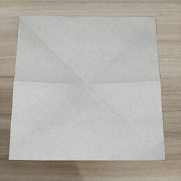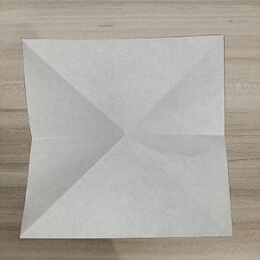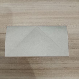 左右の折り目を中央に寄せると、紙が三角形に折りたたまれます。