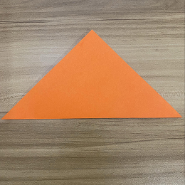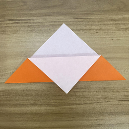 紙をひし形の向きに置き直します。両面に色がある折り紙を使っている場合は、薄い色の面を上に向けてください。