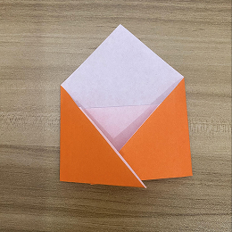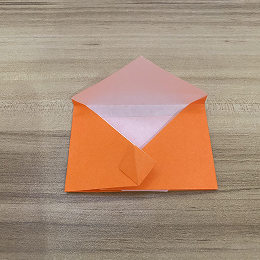上のフラップを折り下げて、先端をひし形のポケットに差し込みます。