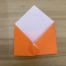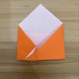 そのフラップの角を外側に向かって折り戻し、少し開きます。