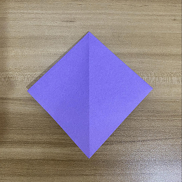 上の角を下の角に合わせて、紙を半分に折ります。