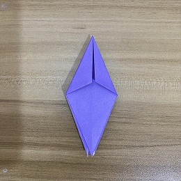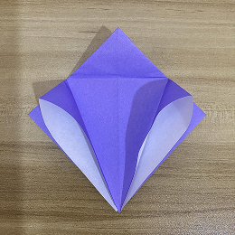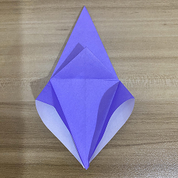次に、上の三角形を下に折ります。