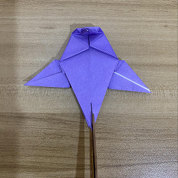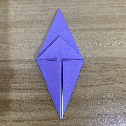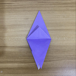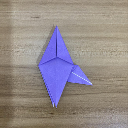 上の三角形の一部を折り下げますが、フラップが合わさる角を越えないように注意してください。