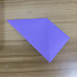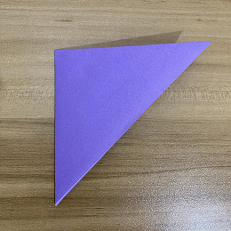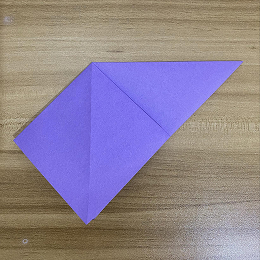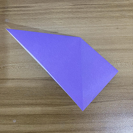 次に、左の角を右の角に合わせて、三角形を半分に折ります。