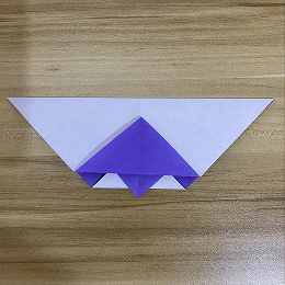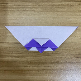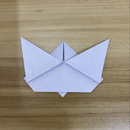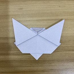 上中央の小さな部分を下に折って、顔の形を整えます。
