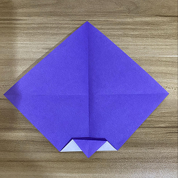 下の角を少し上に折ります。次に、小さな部分を下に折って口の形を作り始めます。