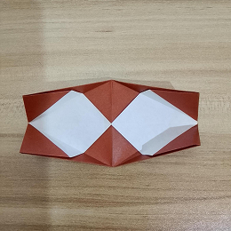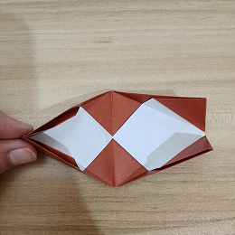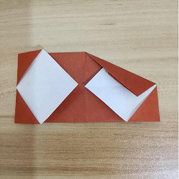 左下と右下の角も上の角と同じように内側に折り、次に広げます。
