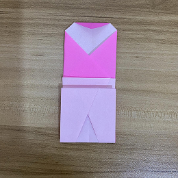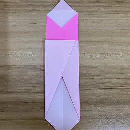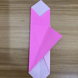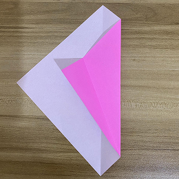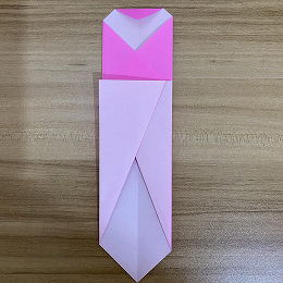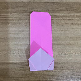 紙の両側を点線に沿って中央に向かって折ります。折る際に左右それぞれでスイベル折りを作り、全体を平らにします。折り目の最終的な位置は次の図を見て確認してください。