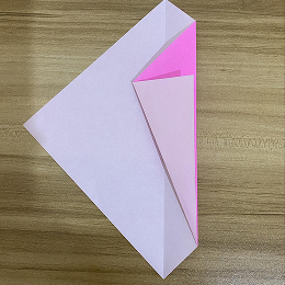 Fold the paper on each side toward the center along the dotted lines. Make a swivel fold on each side and push everything flat. Refer to the next diagram to see the final position of the folds.