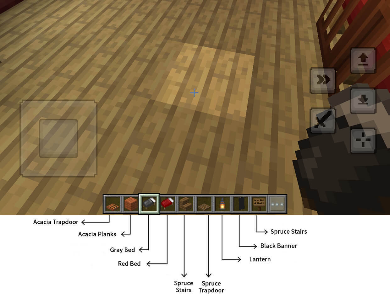 Next, place the spruce sign beside the bed. 「次に、ベッドの横にトウヒの看板を置いてください。」