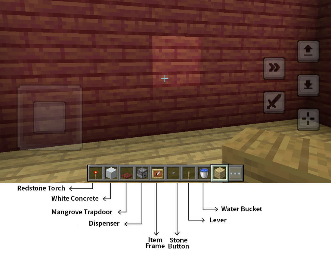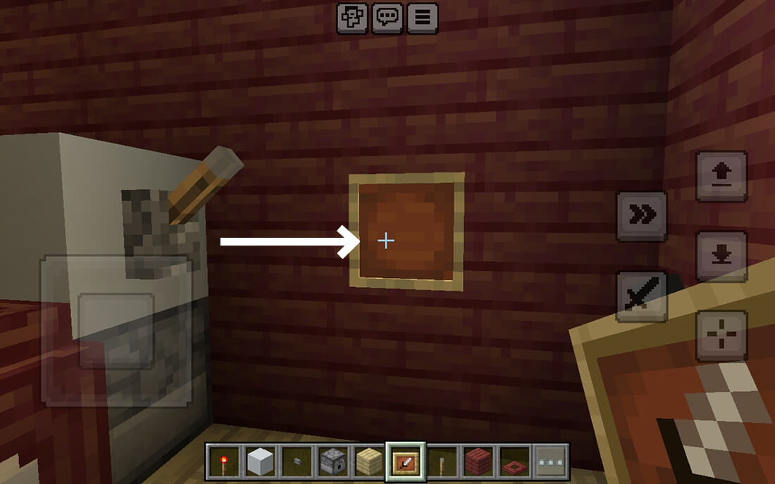 Place the stone button in the item frame. アイテムフレームに石のボタンを置いてください。