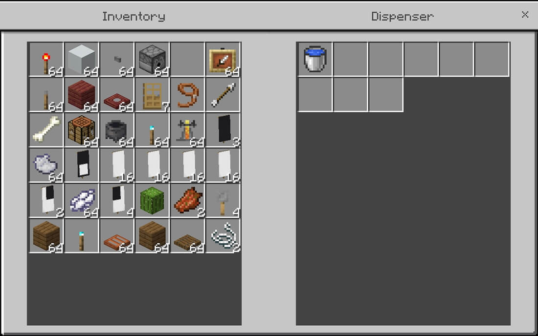 Place the water bucket from the inventory into the dispenser. インベントリからディスペンサーに水入りバケツを置いてください。