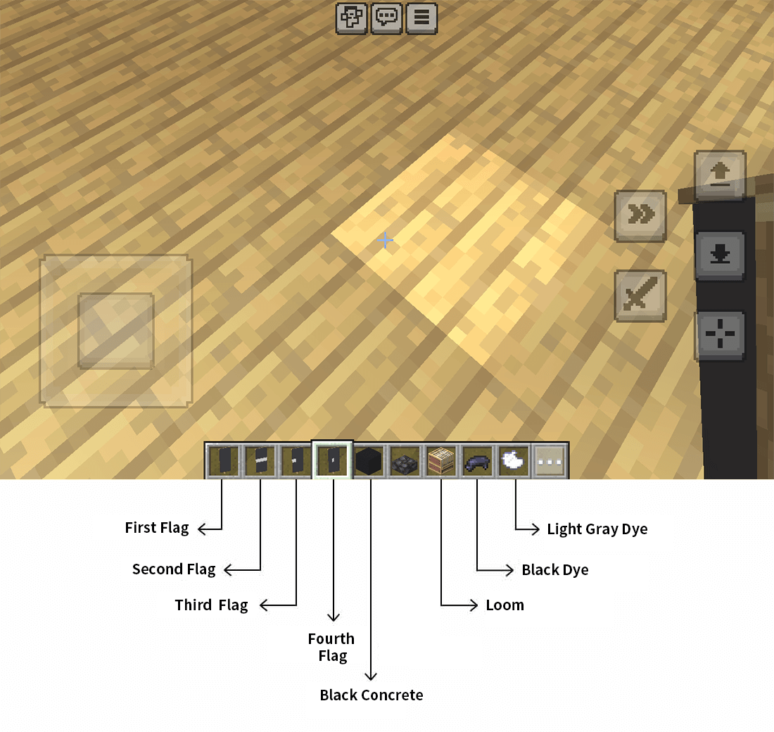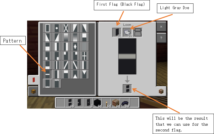 To create the third flag, place the second flag and the black dye. 3番目の旗を作成するには、2番目の旗と黒の染料を配置してください.