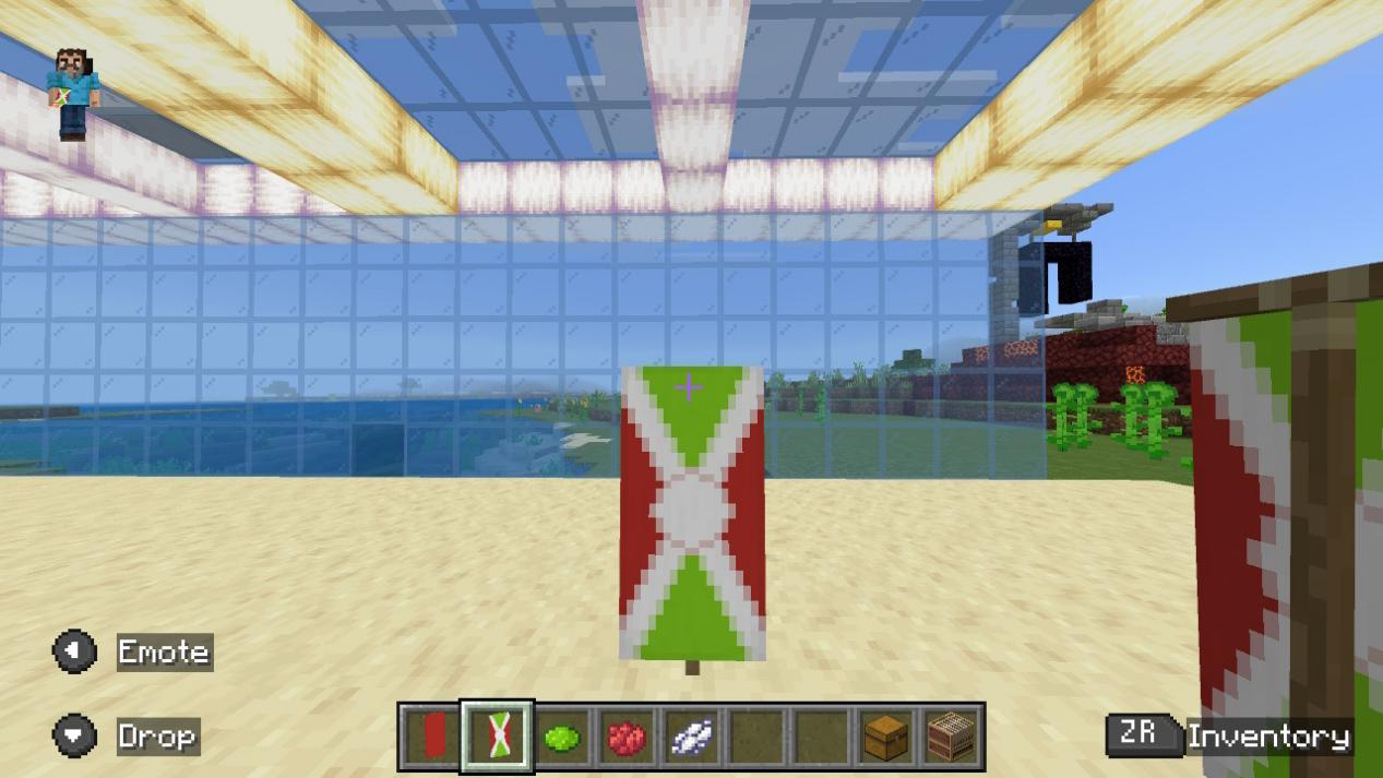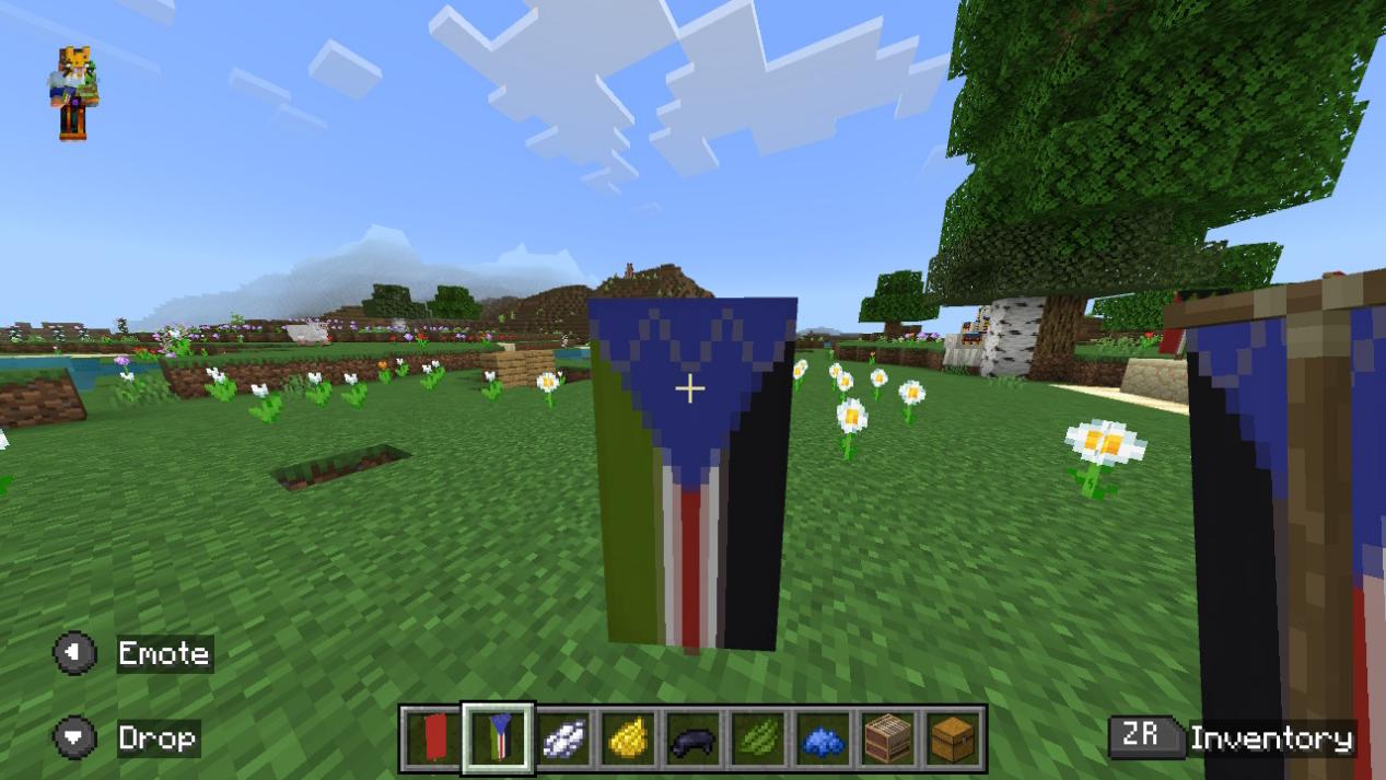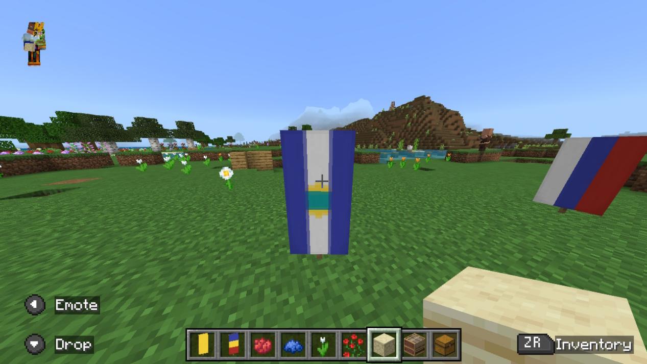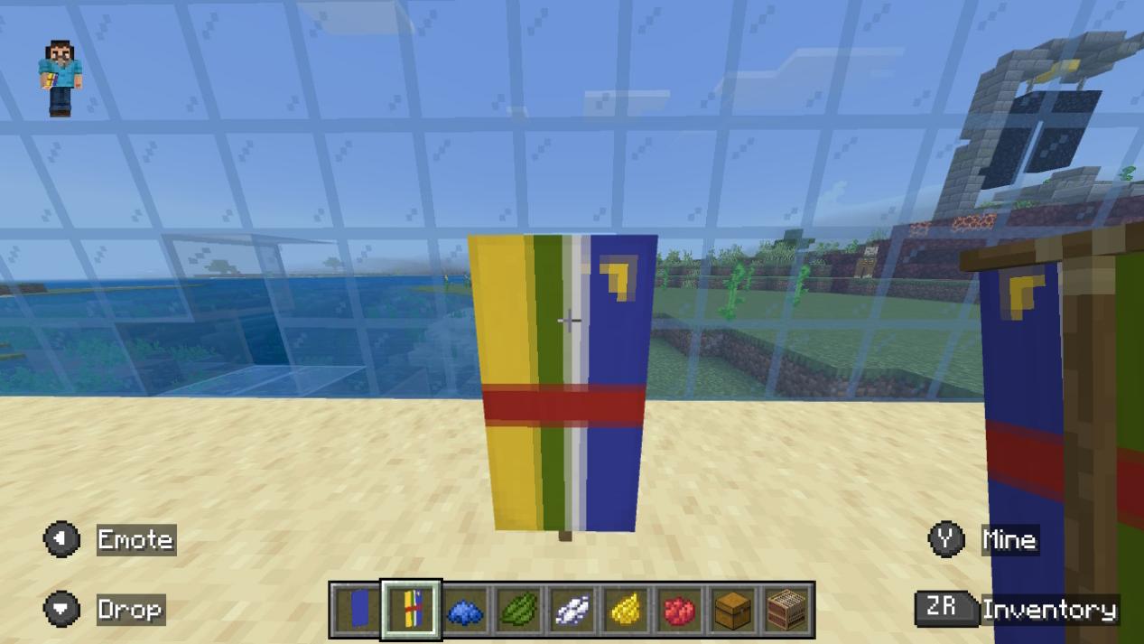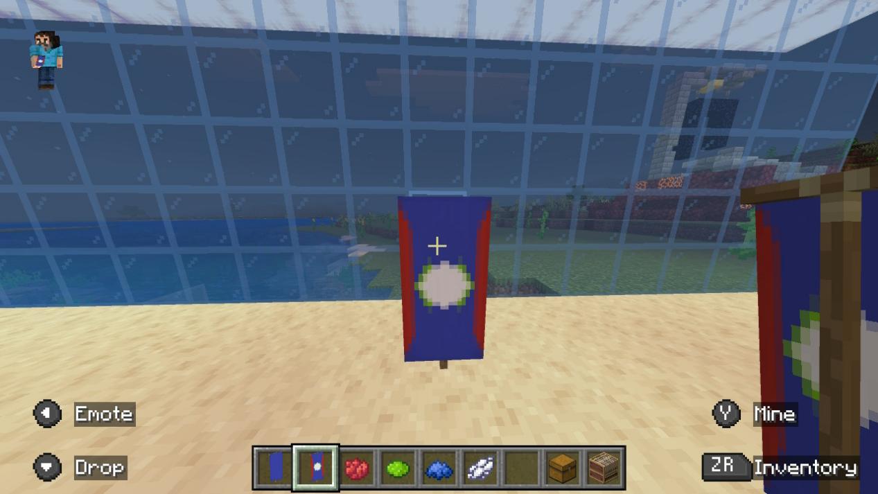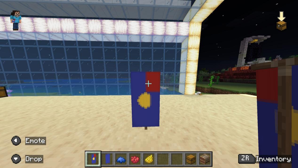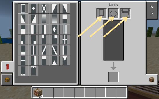 「バナーを左のスロットに、染料を中央のスロットに、バナーパターンを右のスロットに置いてください。」