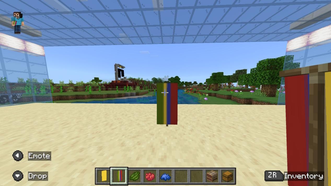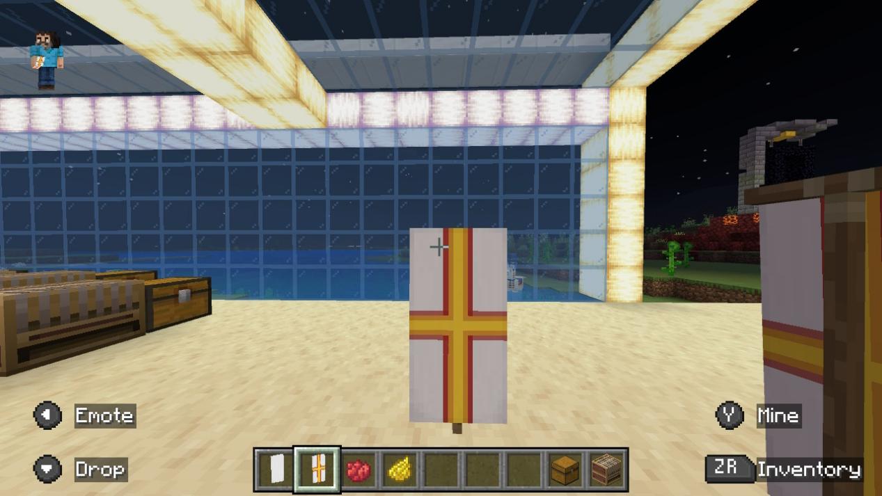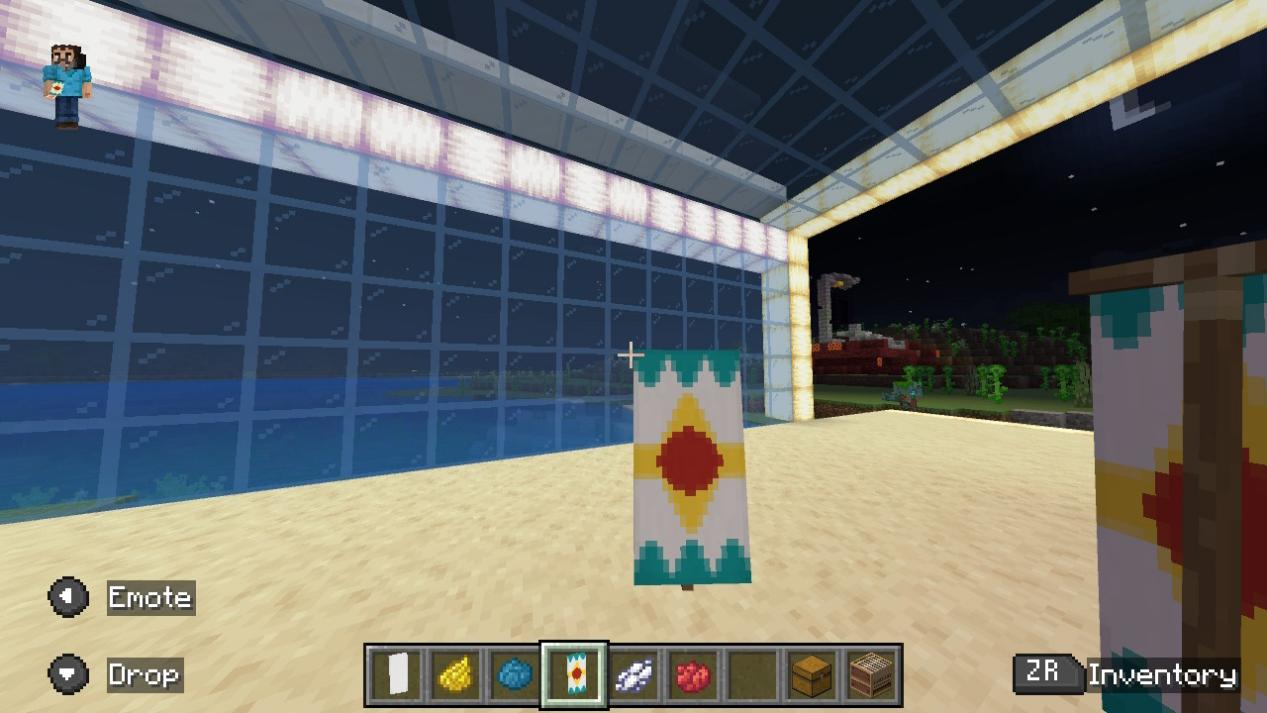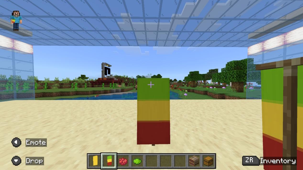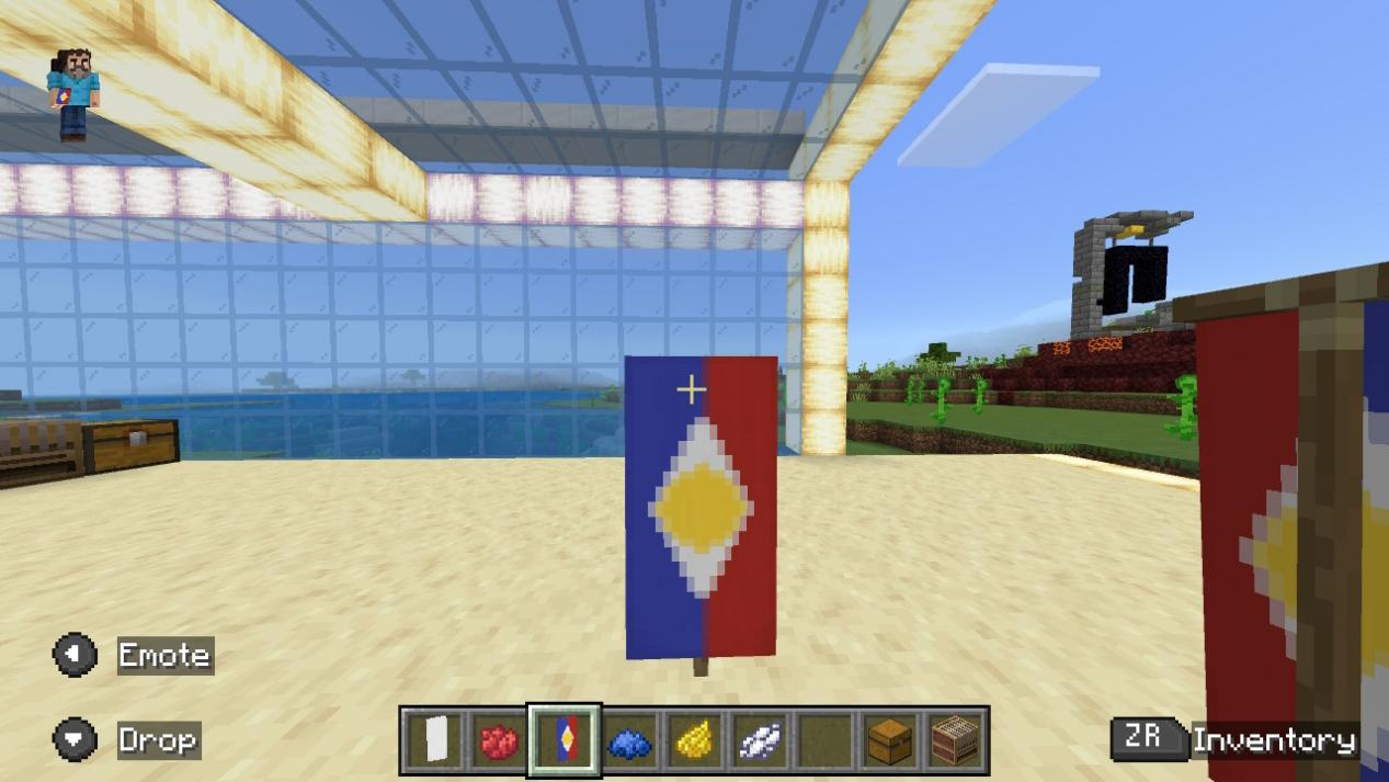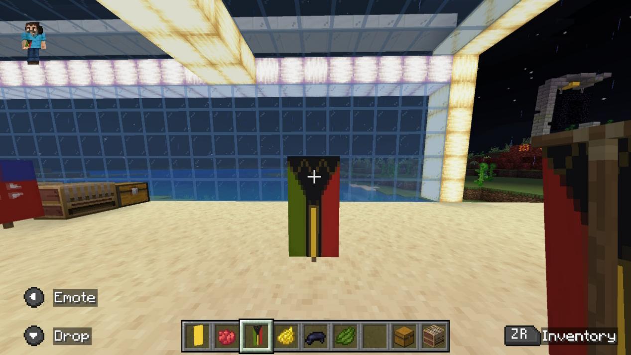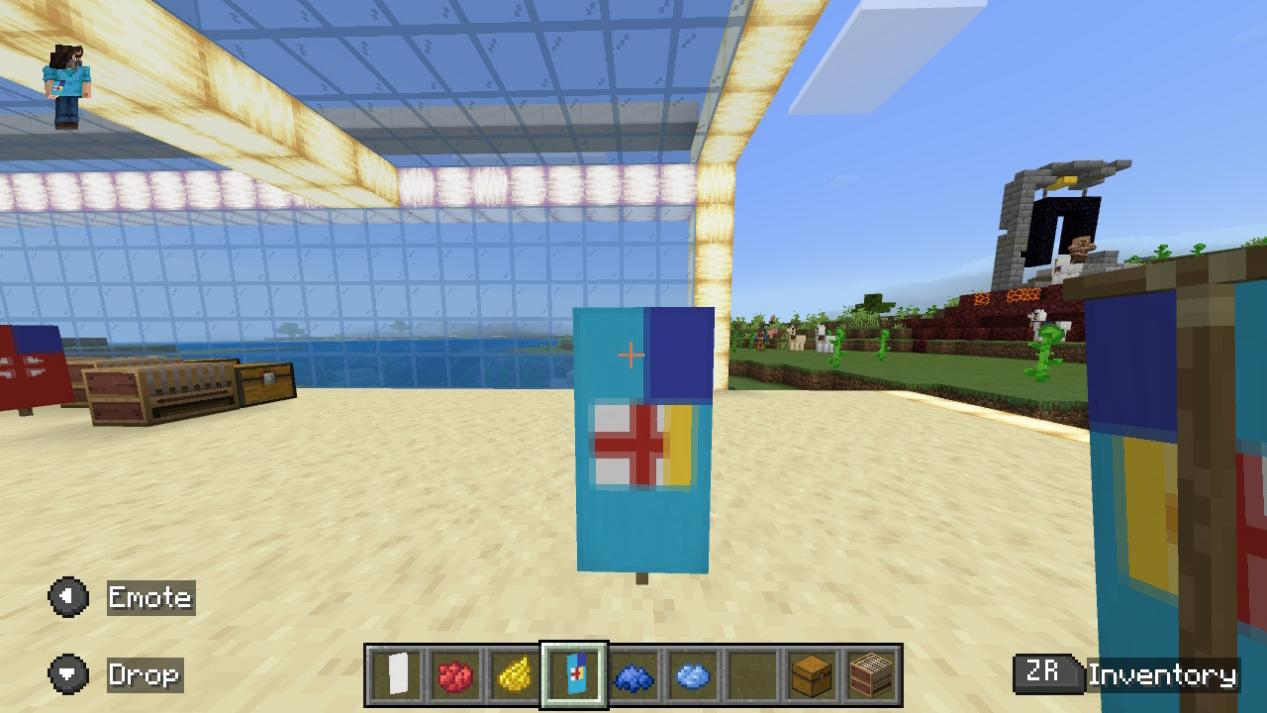 「バナーを左のスロットに、染料を中央のスロットに、バナーパターンを右のスロットに置いてください。」