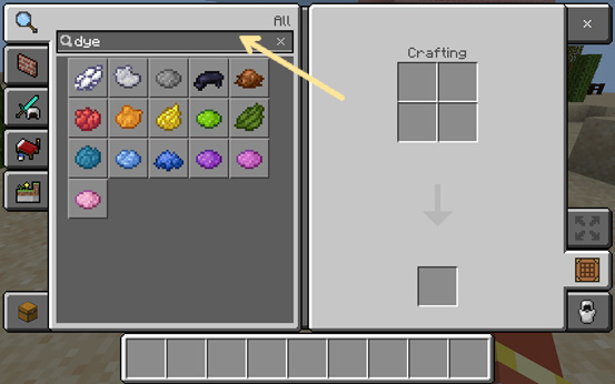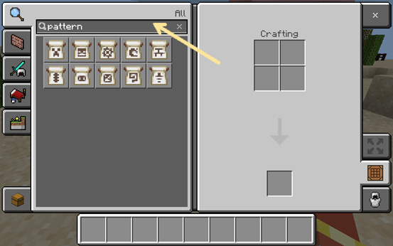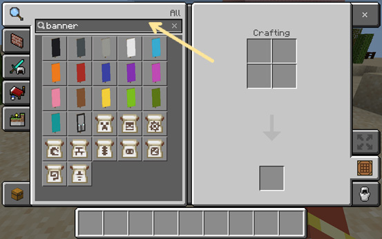 To find the banner, dye, and banner pattern, search for them in the search box.