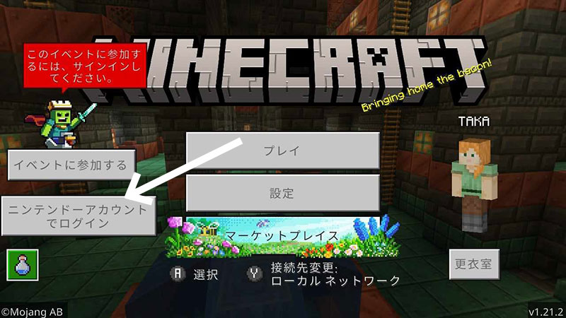 このボタンを押して、Nintendoアカウントにログインしてください。