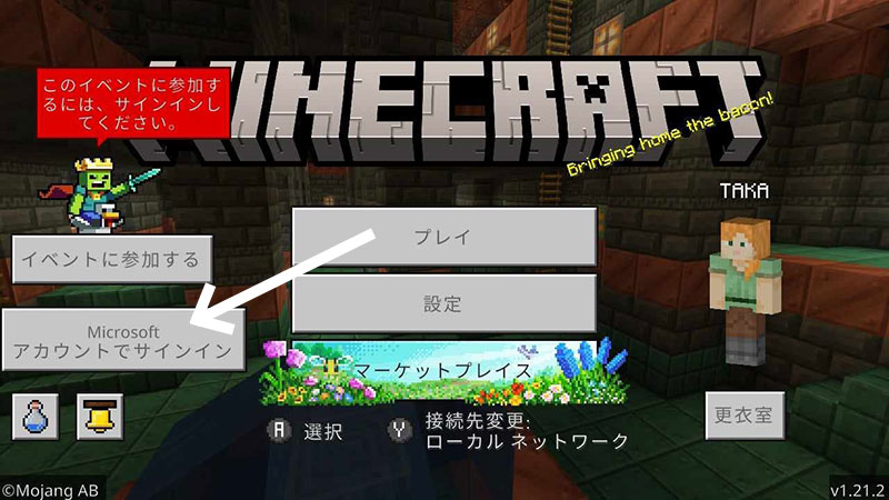 このボタンを押して、マイクロソフトアカウントにサインインしてください。