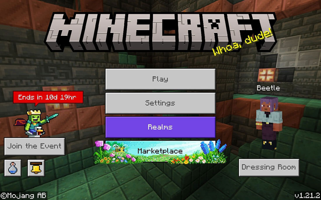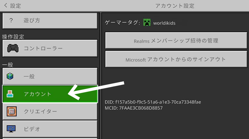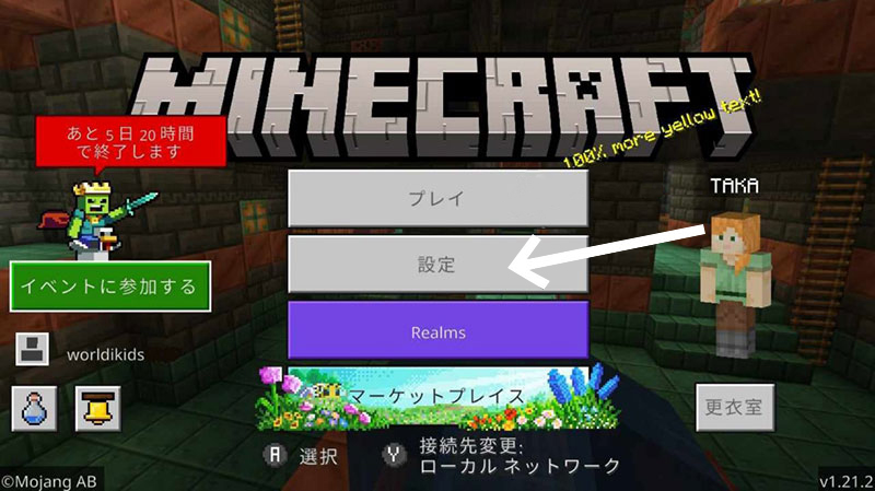 最初の画面でマインクラフトのアイコンを押した後、設定ボタンを押してください。