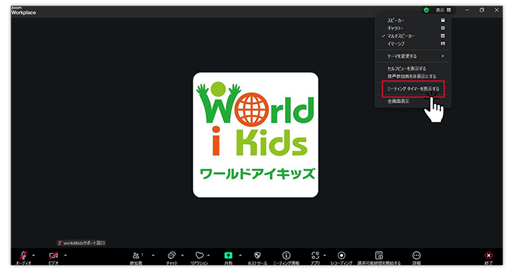 次(つぎ)のレッスンをスムーズに受講(じゅこう)いただくため、レッスンが25分(ふん)ほど経(た)ちましたら、一度(いちど)ミーティングを終了(しゅうりょう)し、再度(さいど)ミーティングを立(た)ち上(あ)げてください。また、経過時間(けいかじかん)がわかるように「ミーティングタイマー」をZOOMの画面上(がめんじょう)に表示(ひょうじ)しておくと便利(べんり)です。