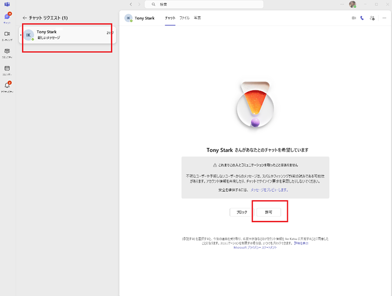 1. チャット画面に「●件の要求」と表示されるので、そこをクリック