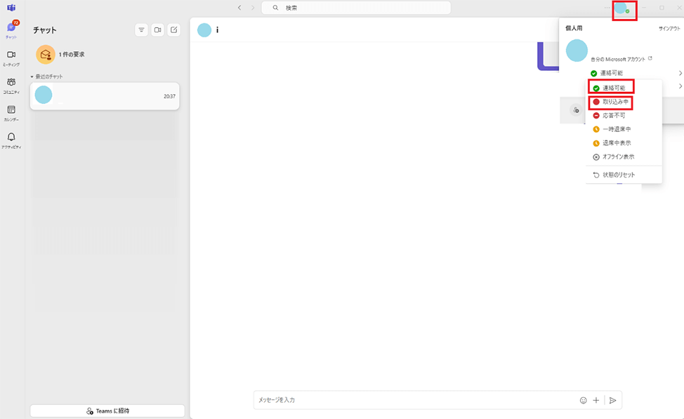 レッスン前に、**Teamsのステータスアイコンが「緑色(通話可能)」**になっているかを必ずご確認ください。