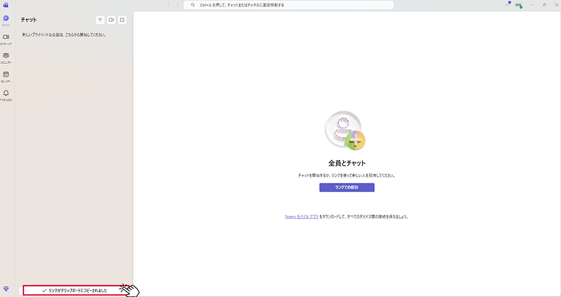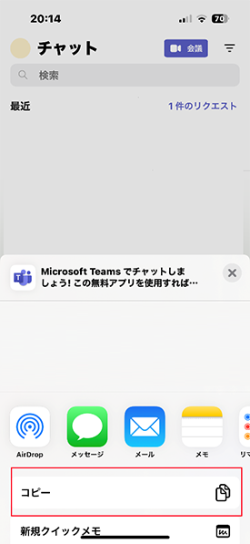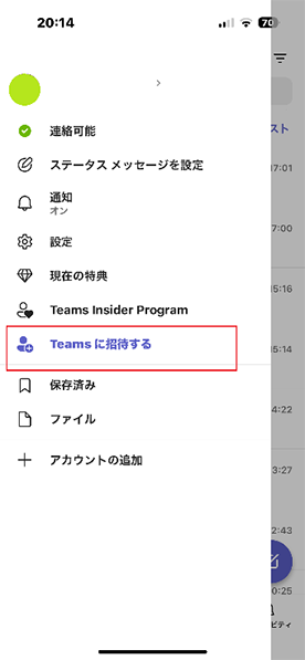 ※使用端末によって、「Teamsに招待」のボタンが表示されないことがあります。その場合は、他の端末のご利用や、アプリのアップデート・再インストールをお試しください。